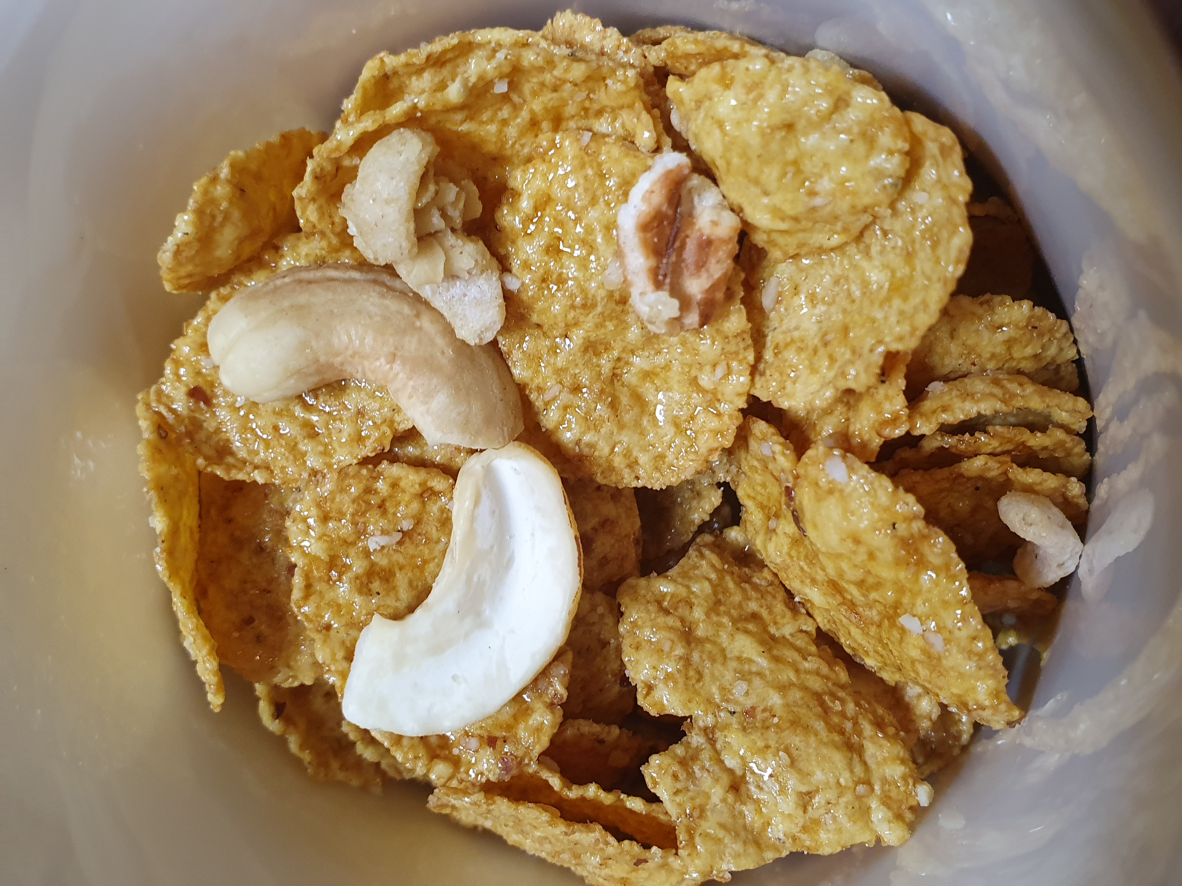 옥수수 씨리얼이 메이플시럽을 골고루 뒤집어써서 향이 좋고 아주 빠작빠작하다.