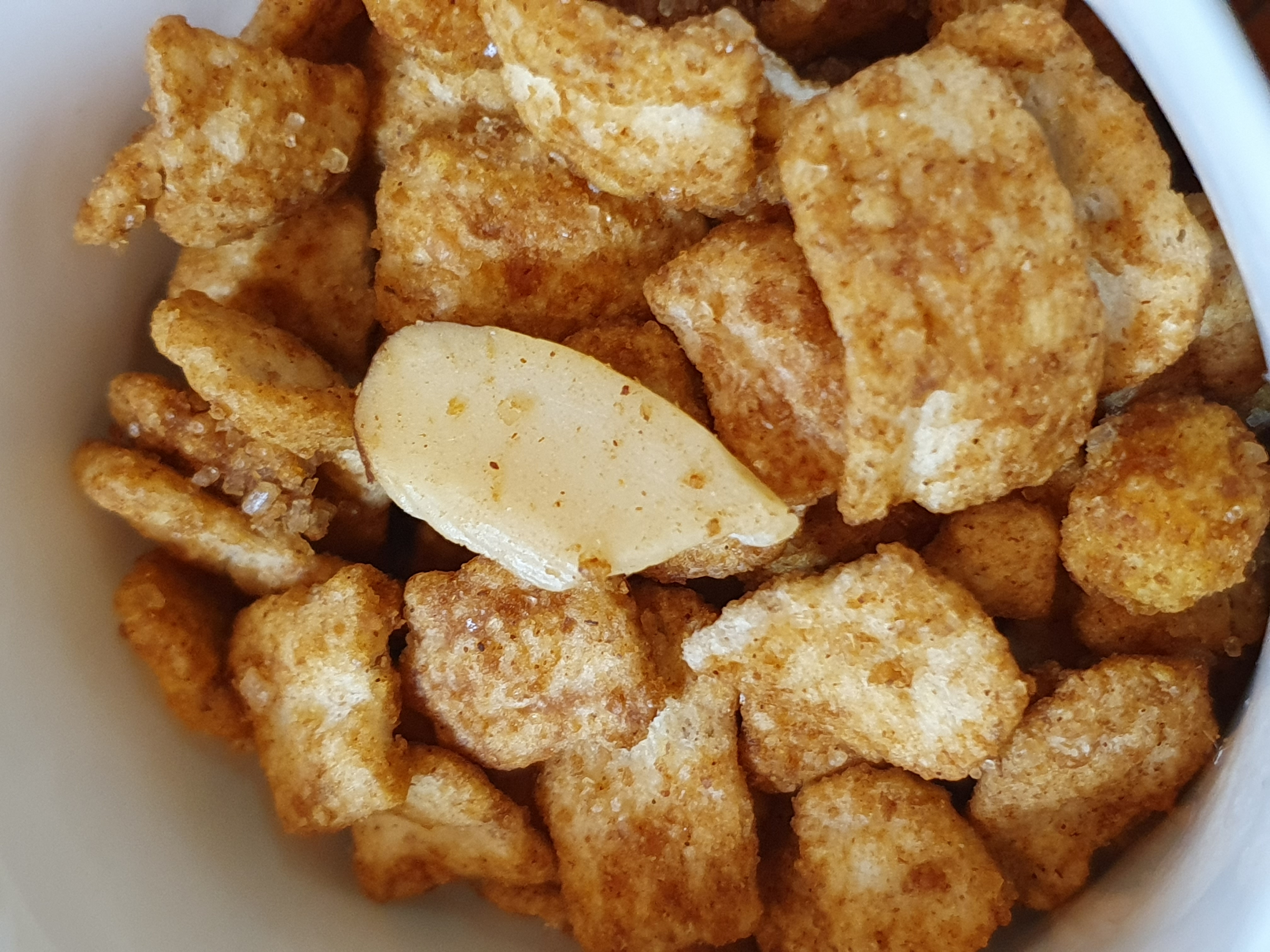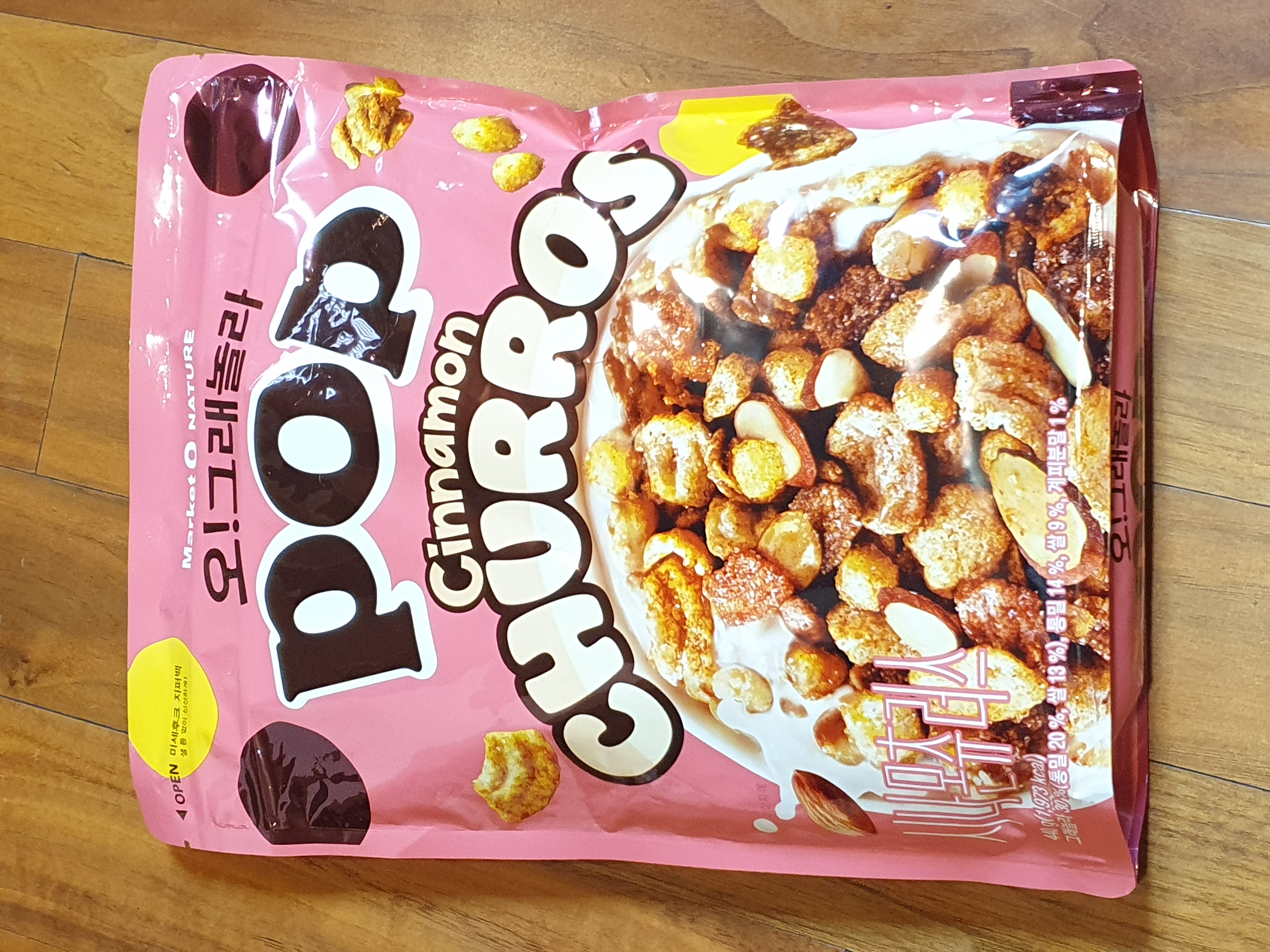 놀이공원 츄로스 처럼 설탕에 뒹굴 린 맛을 좋아한다면 아쉽겠지만 은근한 단맛이 나는 수정과를 좋아한다면 이 씨리얼도 마음에 들것.