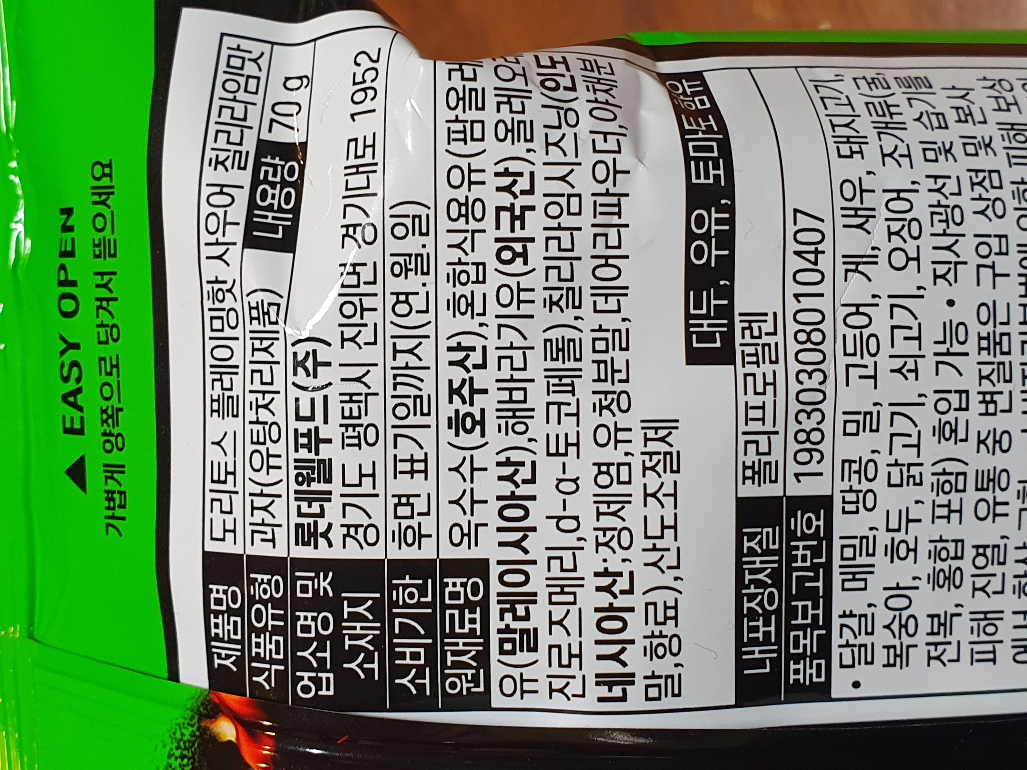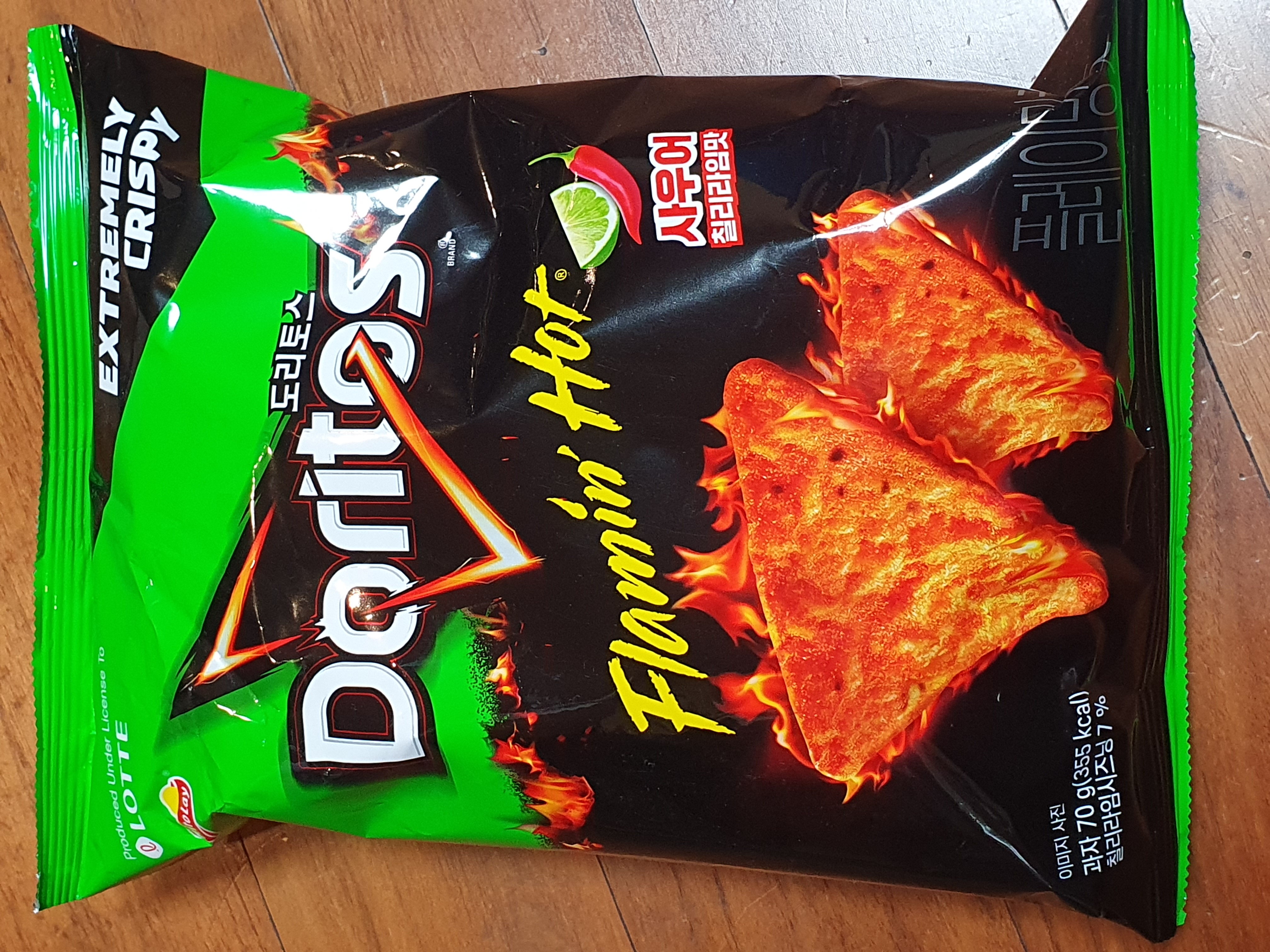 도리토스 플레이밍핫 사우어칠리라임맛.