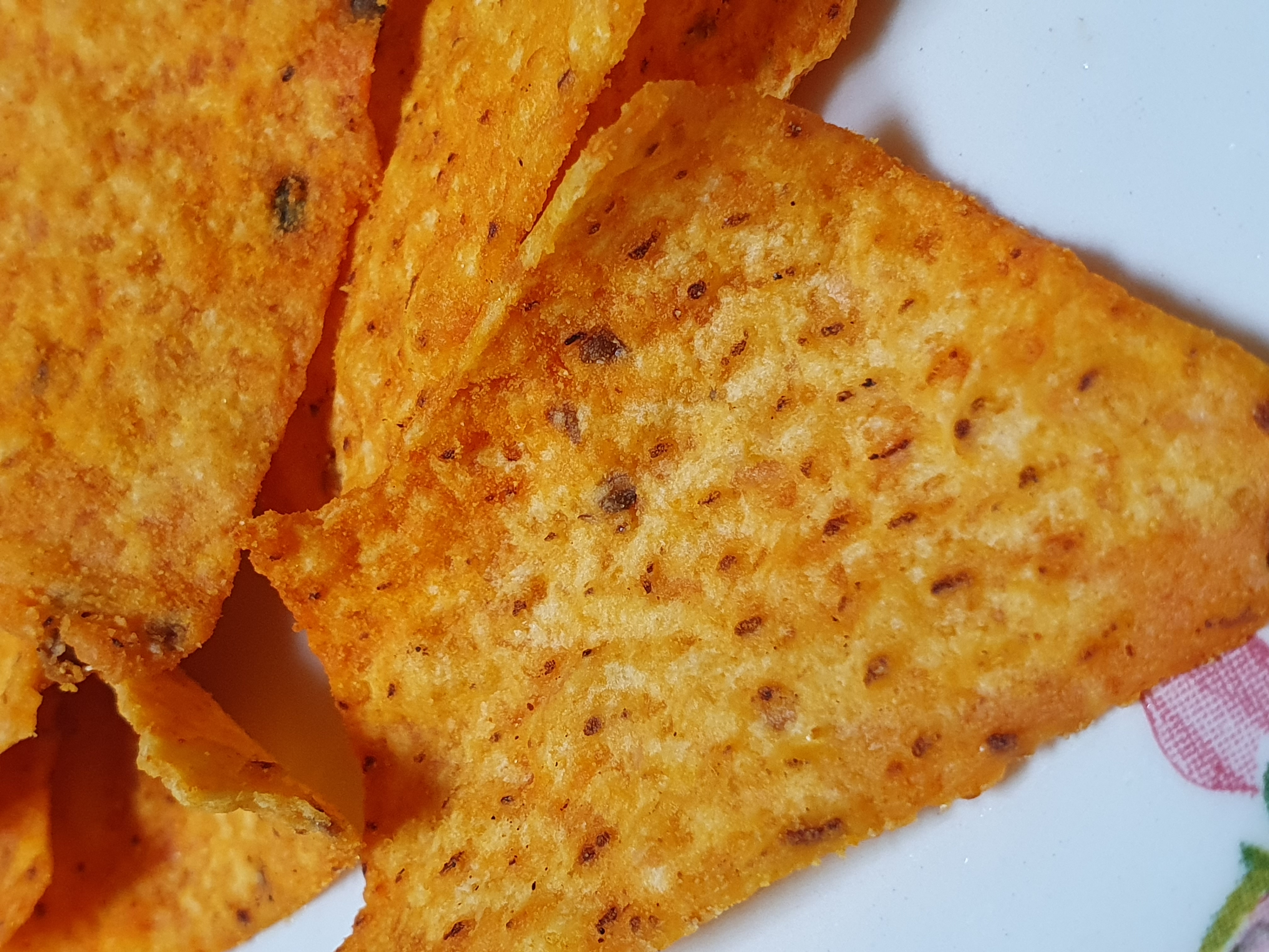 봉지를 열어보니 채도를 확 높인 거 같은 색의 나쵸가 들어있다.