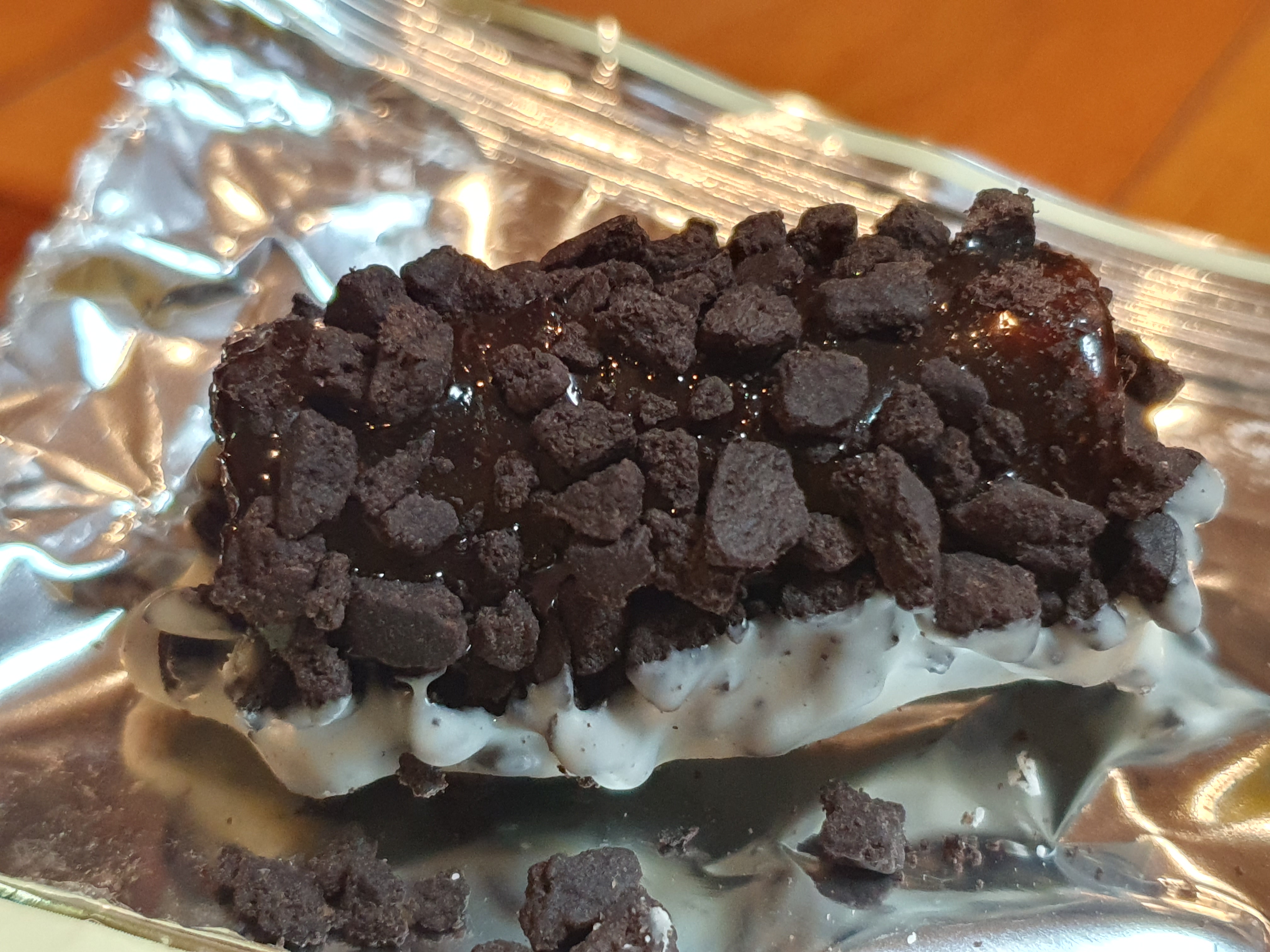 초코쿠키분태가 오도독 씹히고 카라멜이 지익 늘어나면서 이에 달라붙는 거 아니야 싶을 때 웨이퍼 과자가 와사삭 부서지면서 쿠앤크 크림이 입에 퍼진다.