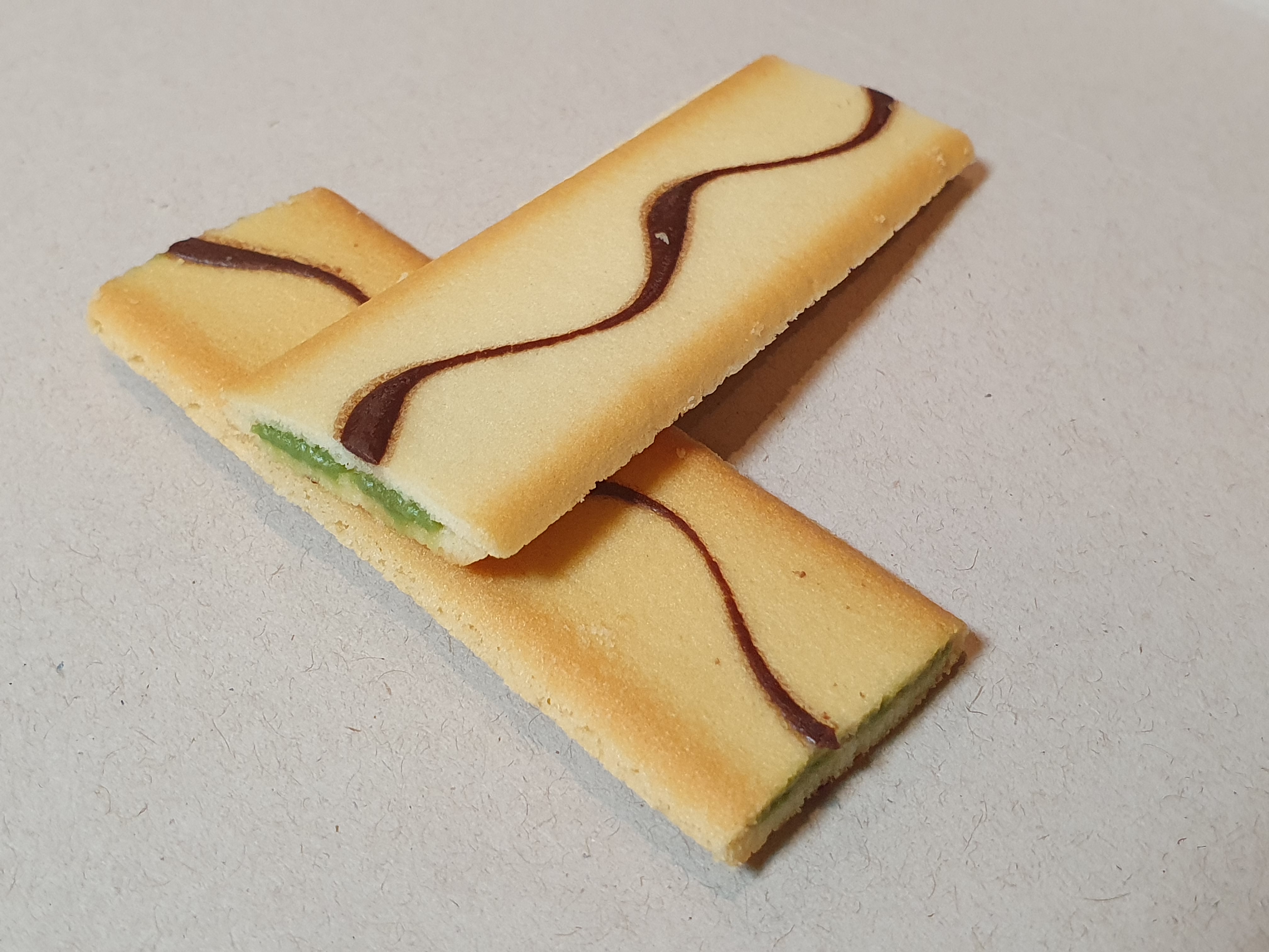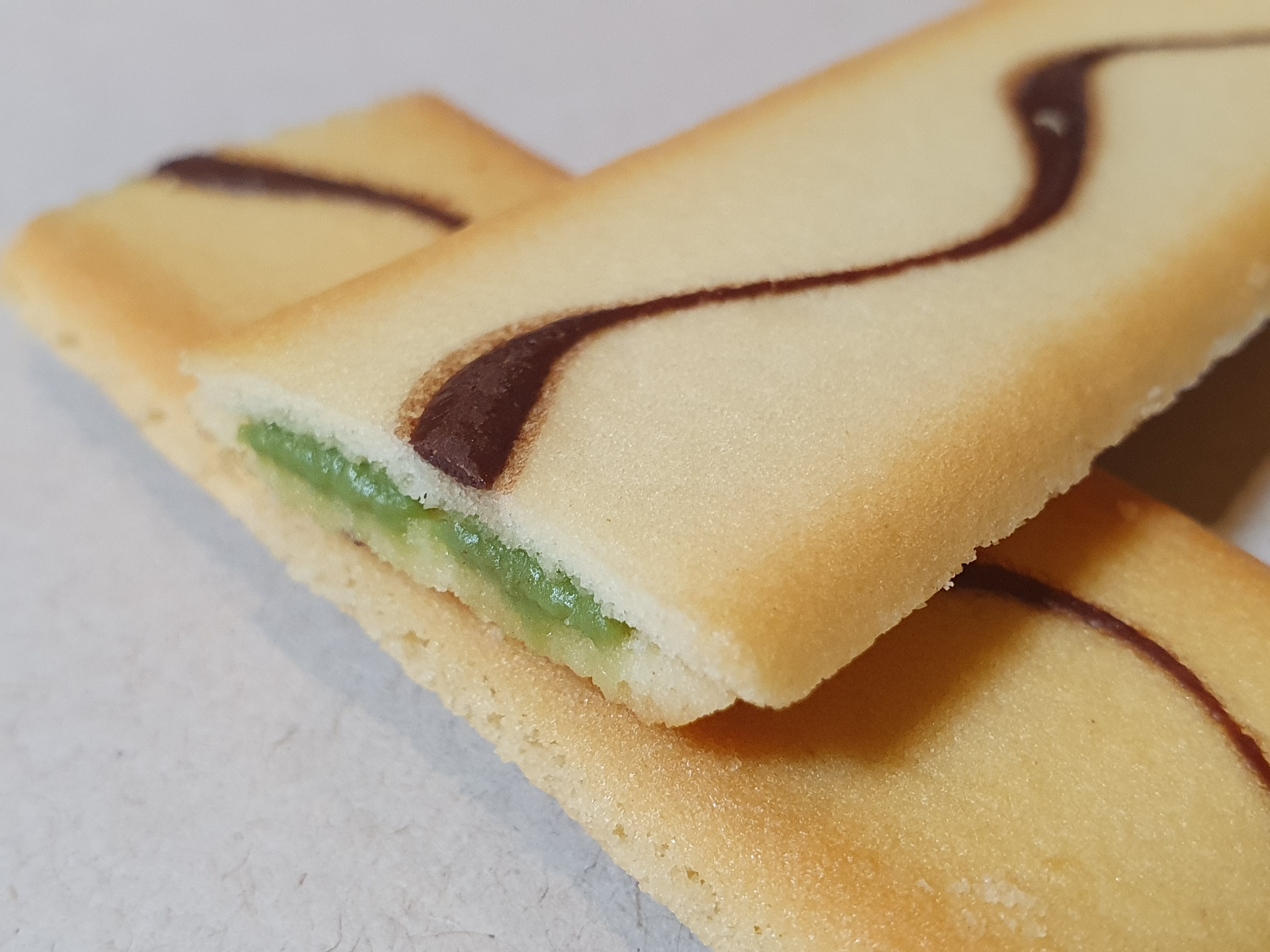 부드럽게 톡 하고 부러지는 버터맛 과자 사이에 말차크림이 발라져 있다.