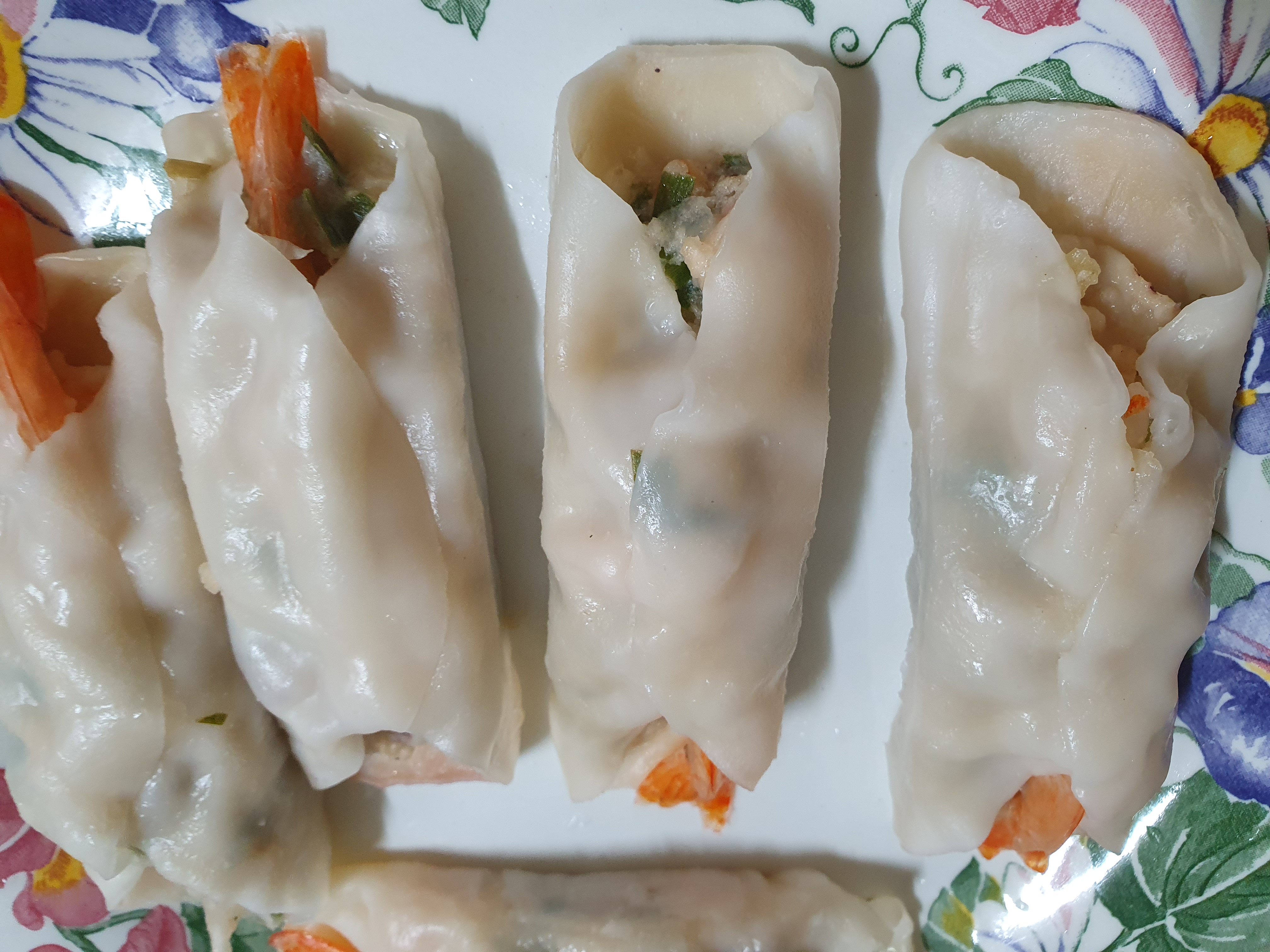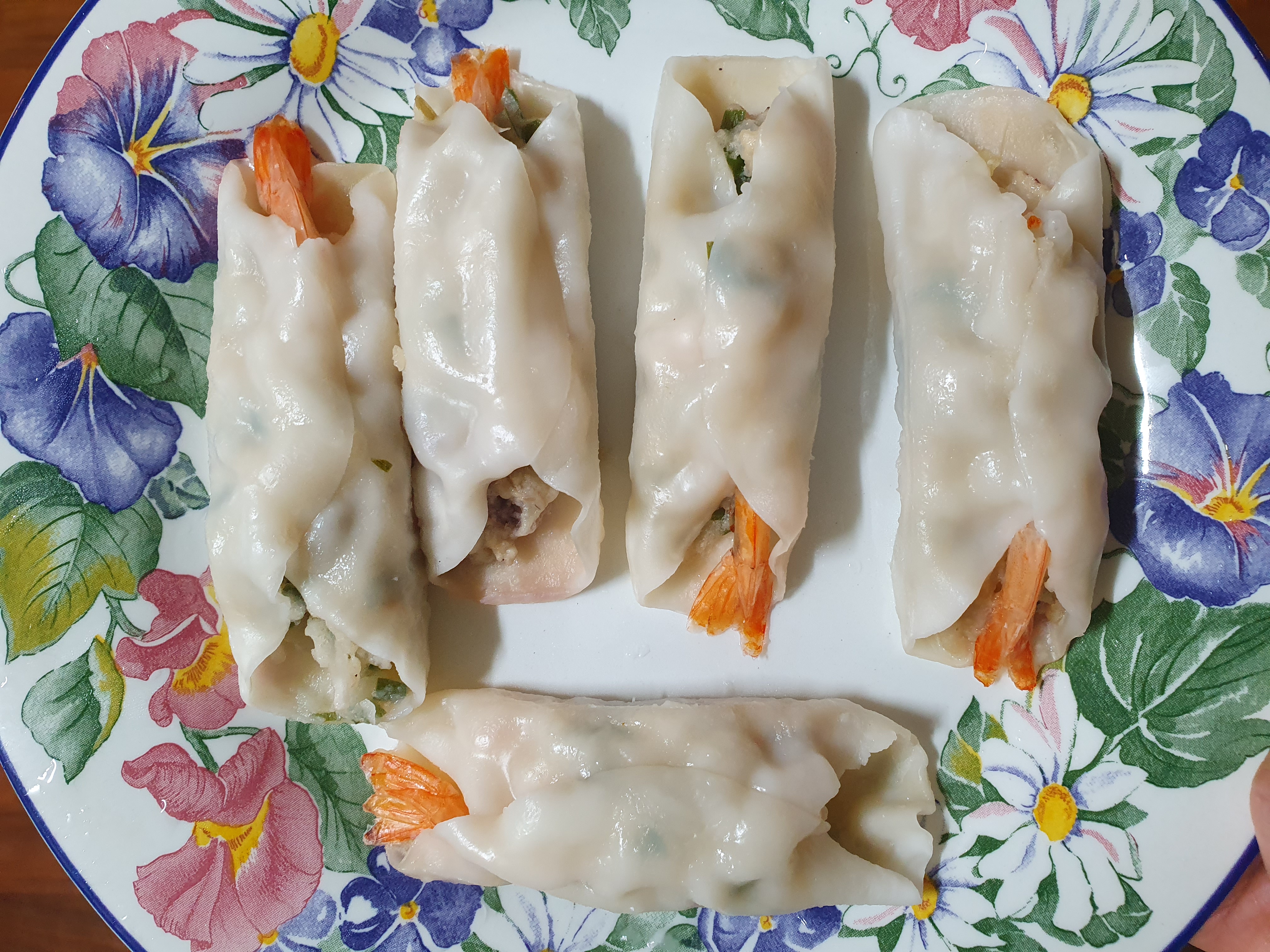 쪄서 먹어보니 피는 좀 무른데 안에 소가 탱글하다. 어육 다짐이 들어가서 약간 탱글 식감이 나나보다.