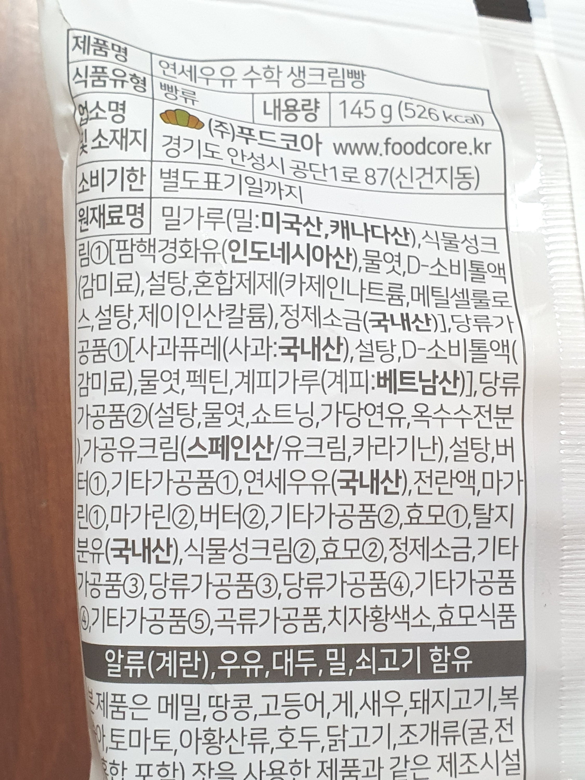빵은 삼립 패스츄리파이빵같은 눅눅한 질감이고 크림은 미끌거리는 질감에 기본 크림 맛이다.