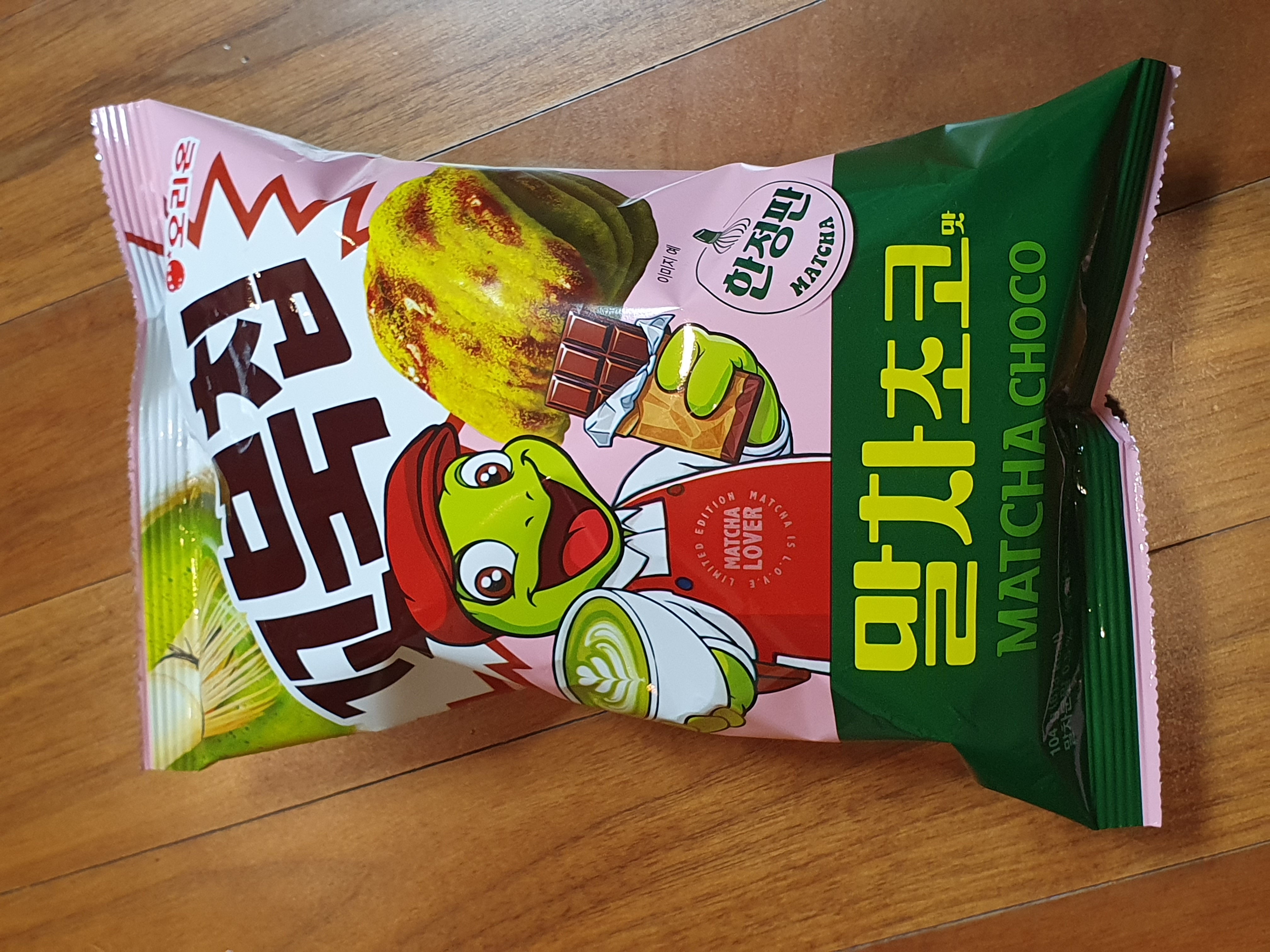 말차초코라는 이름답게 연두색 갈색이 섞여있다.